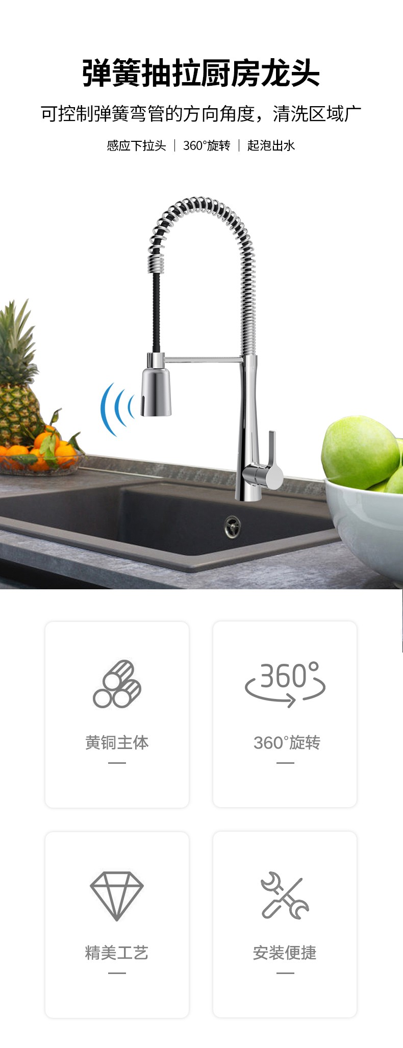 FK8334-E0 感應(yīng)下拉頭廚房彈簧龍頭